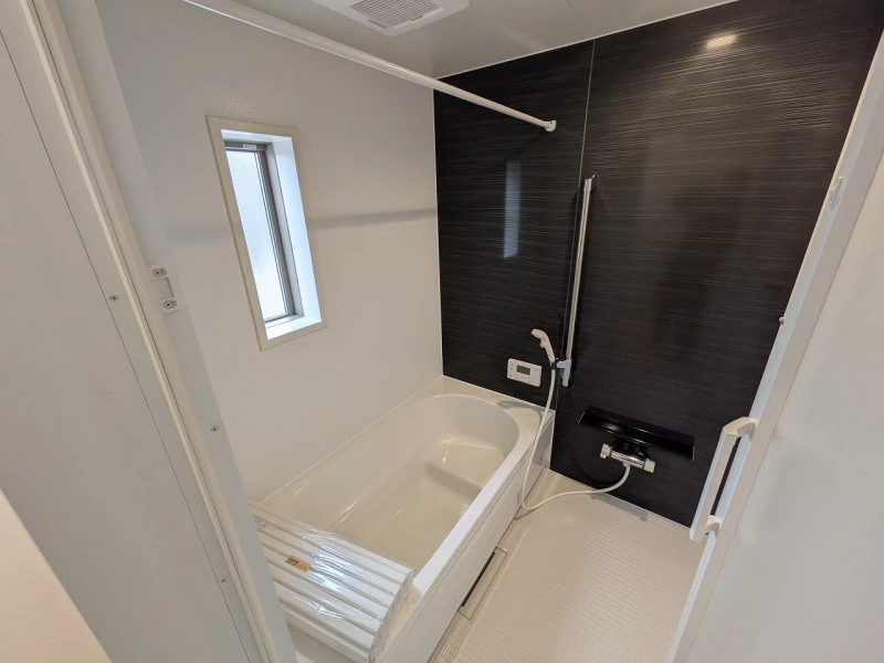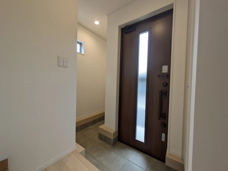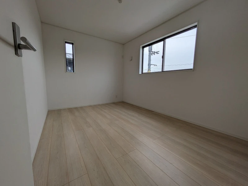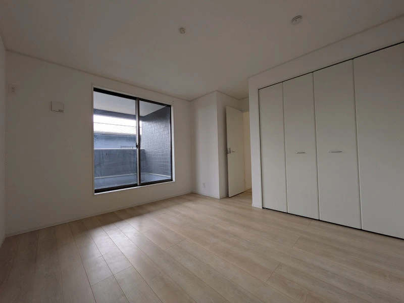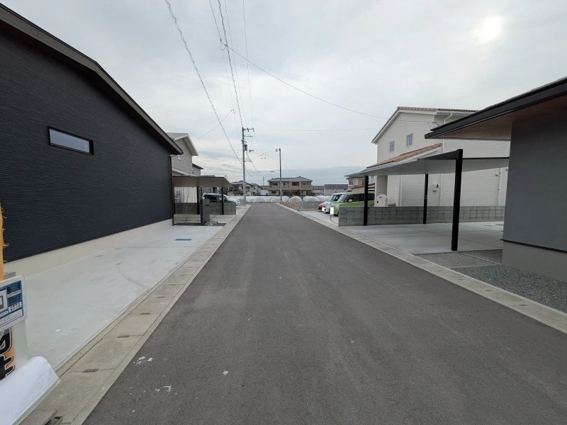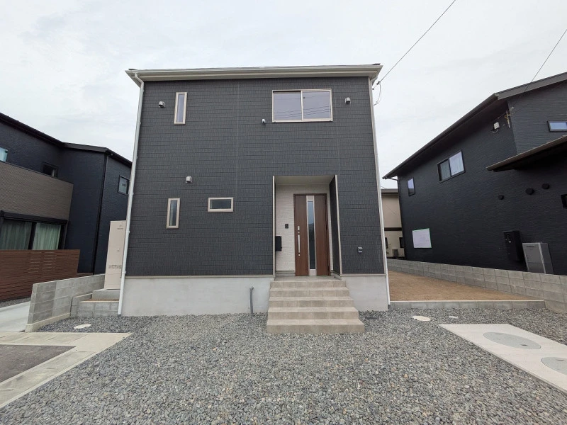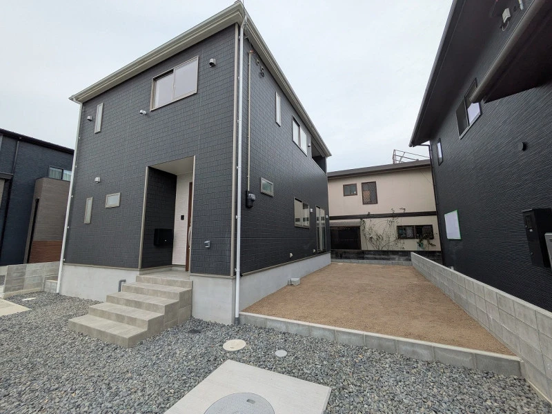2026年3月に完成予定の新築物件!システムキッチン、オール電化、乾燥機付ユニットバス、TVモニター付インターホン、うれしい防犯カメラ、人感センサー付玄関灯、駐車場2台可。