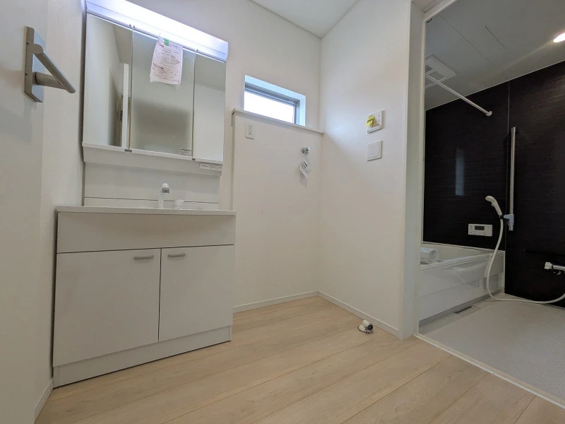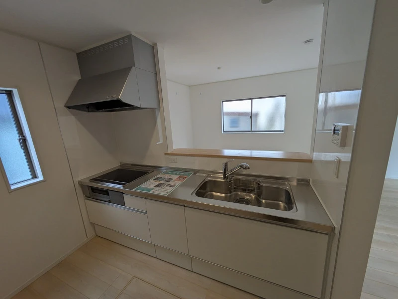 | 設備 | 電気、上水道、浄化槽、システムキッチン、カウンターキッチン、浄水器、IHクッキングヒーター、給湯、トイレ2箇所、温水洗浄便座、シャンプードレッサー、浴室乾燥機、フローリング、複層ガラス、ルーフバルコニー、オール電化、収納スペース、床下収納、シューズインクローゼット、ディンプルキー、モニタ付インターホン、火災警報器等設置済、室内洗濯機置場、駐車2台可、バス・トイレ別 | ||