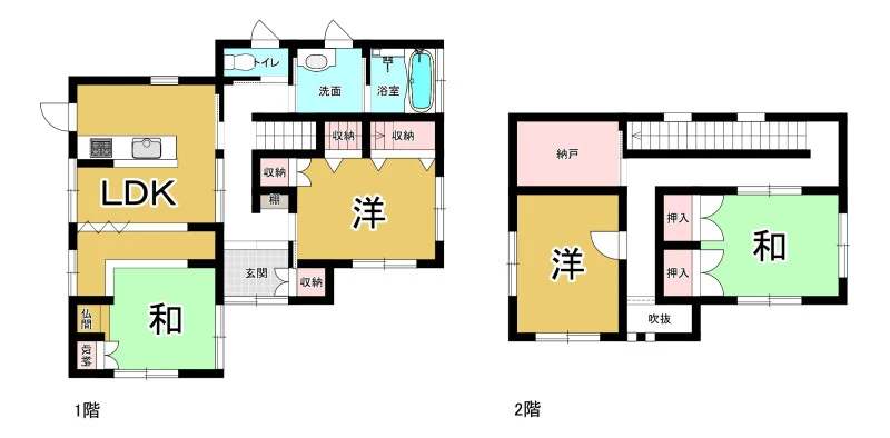 対面キッチン、畳コーナーあり。1階に個室の洋室があり使いやすい間取りです。